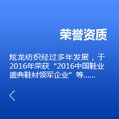 泉州市炫龍紡織科技有限公司位于中國福建晉江--中國鞋都,是一家集研發、生產、銷售為一體的紡織企業公司。主要生產:三層網、經編網布、針織服裝布、休閑時尚女裝網布、鞋用各類BK布、拉毛布、大小提花布、賈卡提花、3D飛織、各類布料加工貼合等。 公司秉承“求質創新、誠信高效、質優價廉”的經營理念為宗旨,竭誠為廣大海內外客戶求創一流的服務及優質的品質,歡迎海內外的客戶供樣、定制及洽談合作。